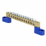 Шина 0 N (6х9мм) 12 отверстий латунь 2 синих угловых изолятора EKF PROxima sn0-63-12-2